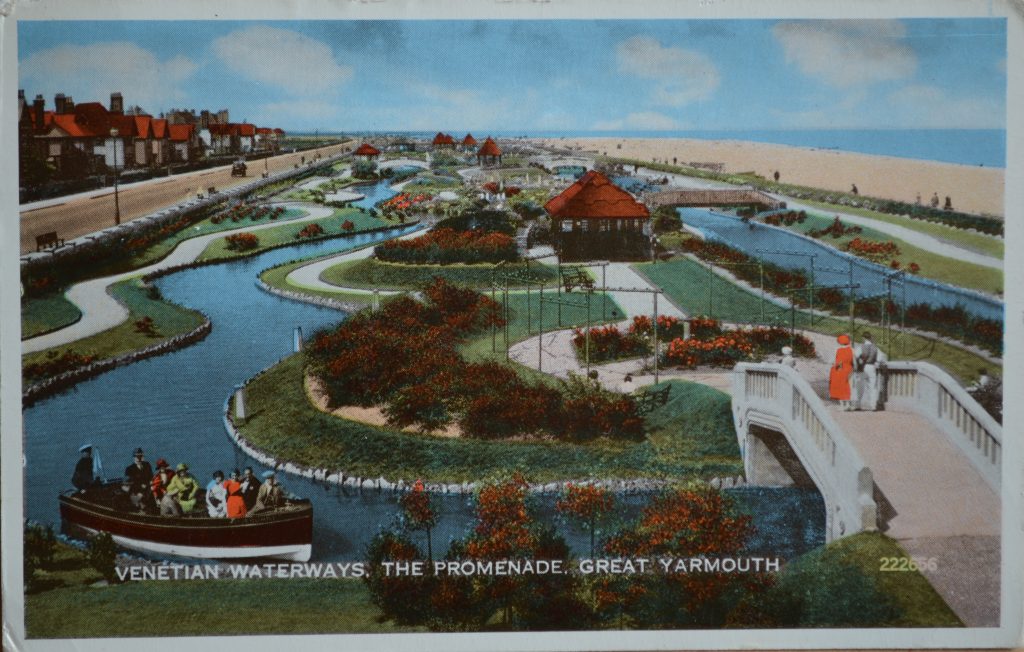 The Venetian Waterways and Boating Lake have been an integral part of Great Yarmouth’s seafront landscape since their construction in the 1920s. Situated at the northern end of Marine Parade, the Boating Lake was first opened in 1926, followed by the Venetian Waterways in 1928 – designed by S. P. Thompson and built as part of a relief work scheme for the local unemployed after the First World War.
